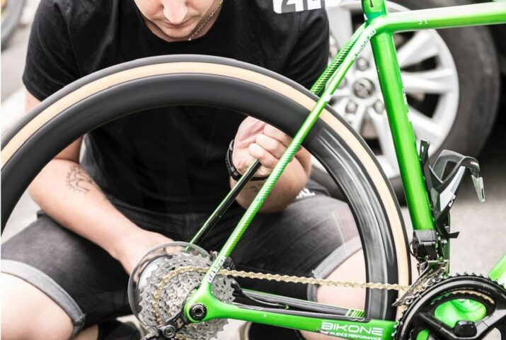 Normalmente el día empieza muy temprano, hacia las 7.00, aunque depende mucho del traslado que haya que hacer hasta la salida de la etapa y la hora a la que empiece la prueba. Desayunamos bastante rápido y lo primero que hacemos es hinchar todas las ruedas que van a la carrera, tanto las de las bicis como todas las de repuesto y revisamos todas las baterías de los cambios porque a veces se puede quedar un botón pulsado y se descargan. En ese caso solemos tener por lo menos un par de horas antes del traslado a la salida para volver a cargar las baterías, o para solucionar cualquier imprevisto que pueda surgir con las bicis como ruedas que aparecen pinchadas, etcétera.
