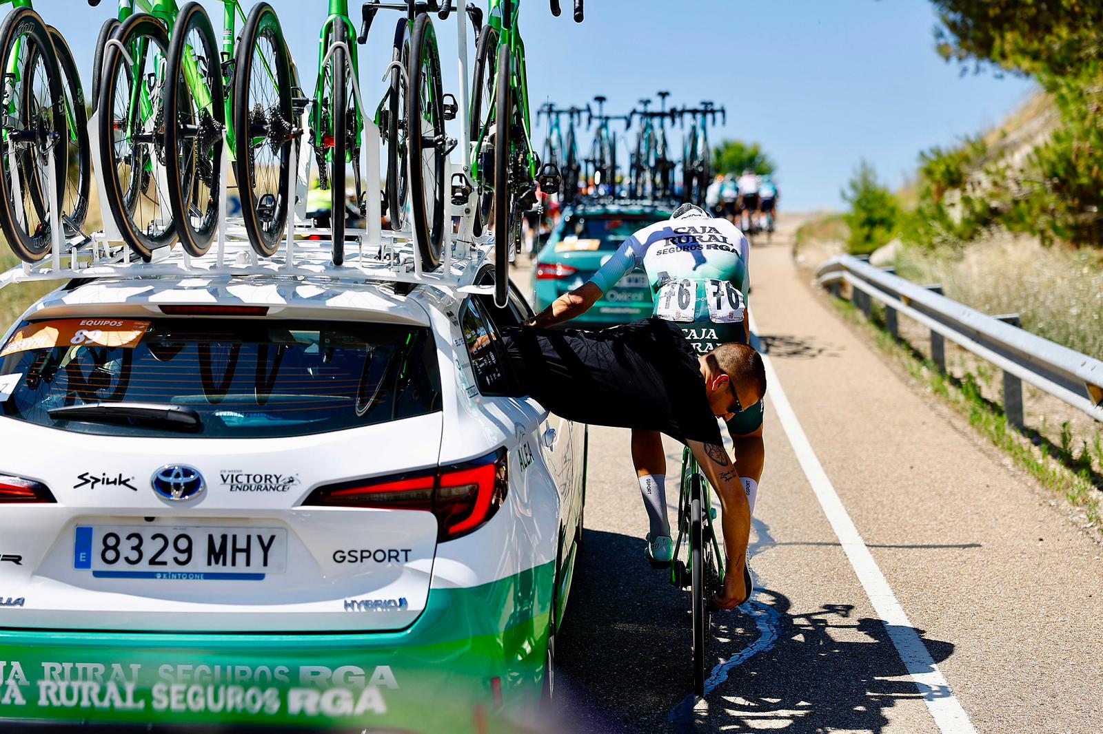 Lo peor son las caídas, cuando nos avisan que ha habido una caída no sabemos lo que nos vamos a encontrar, bajamos del coche a todo correr con la herramienta, ruedas preparadas y no sabemos si vamos a poder solucionar el problema. Son situaciones de mucho estrés y nunca es agradable encontrarte con un ciclista que se ha hecho daño. Es la peor situación que se puede dar en nuestro trabajo.
