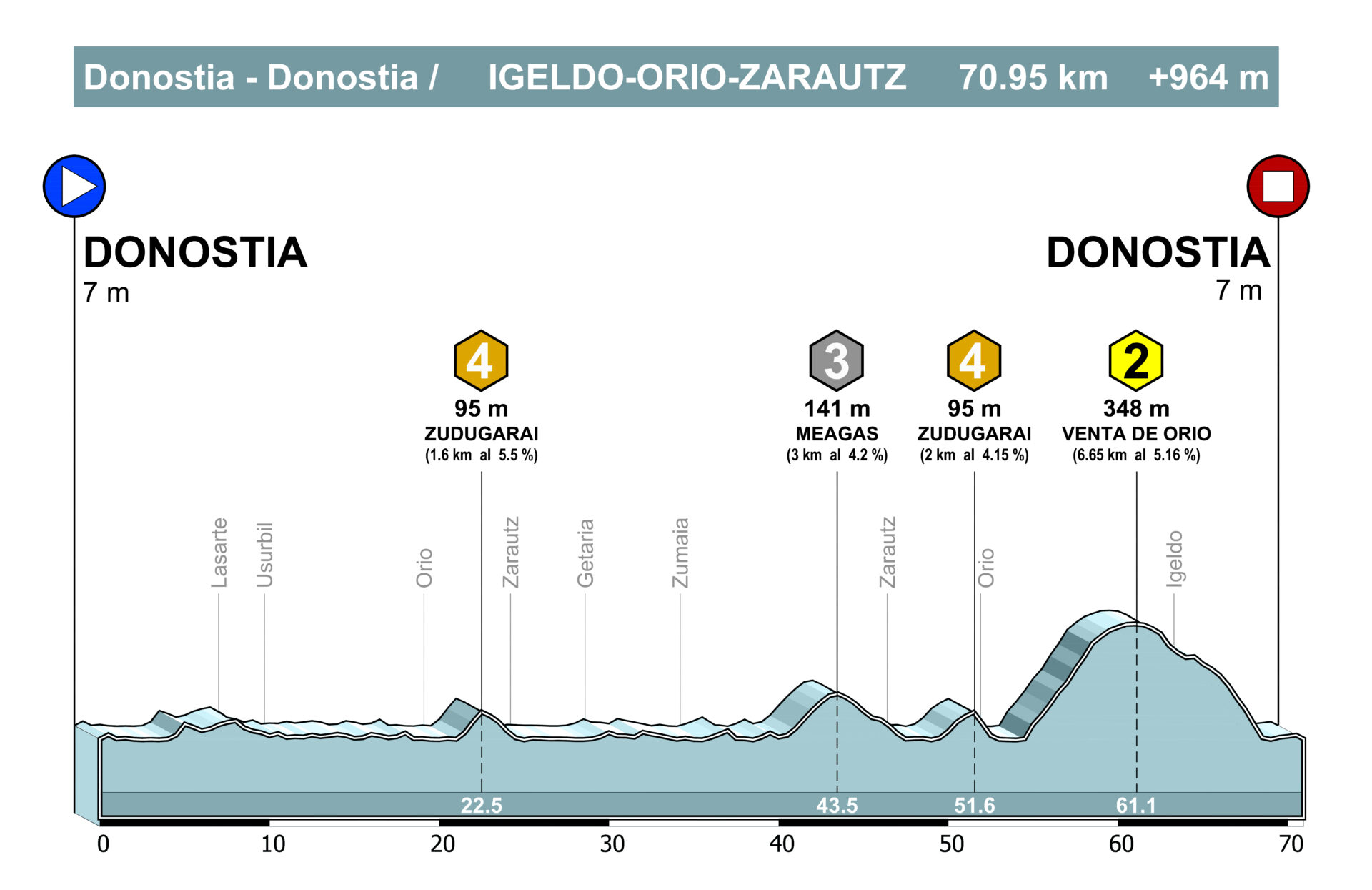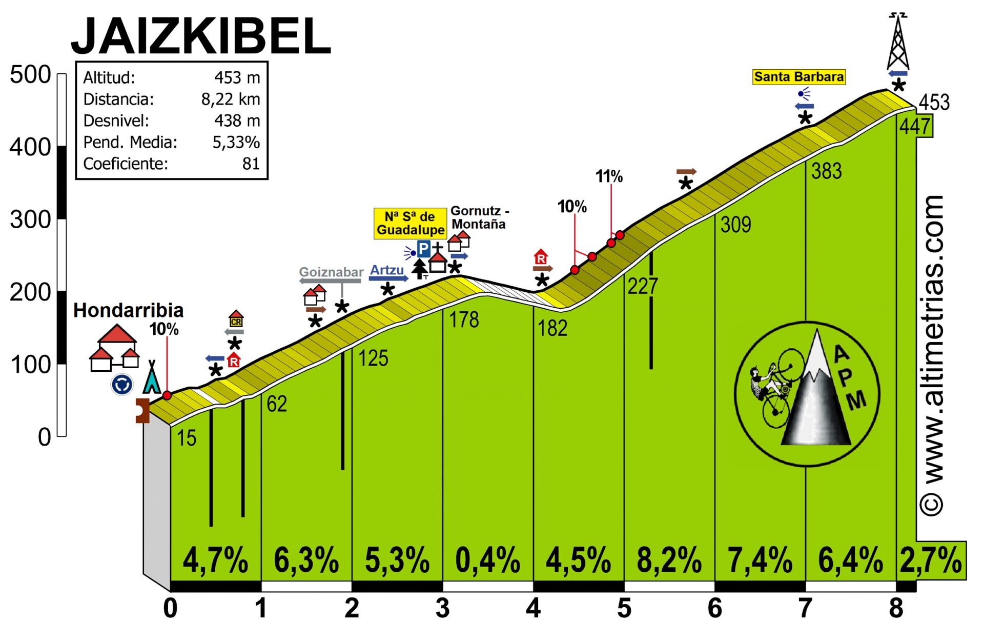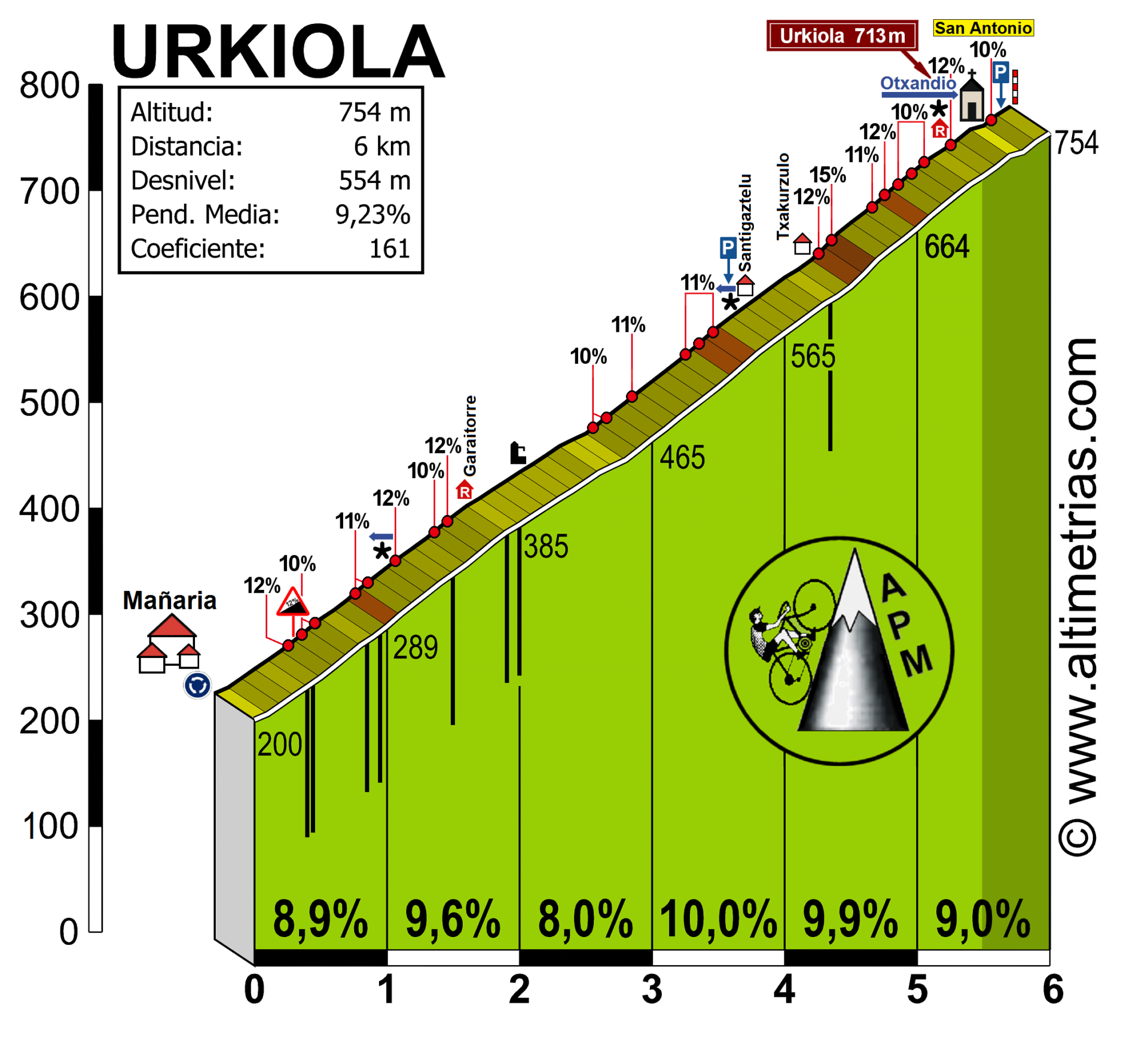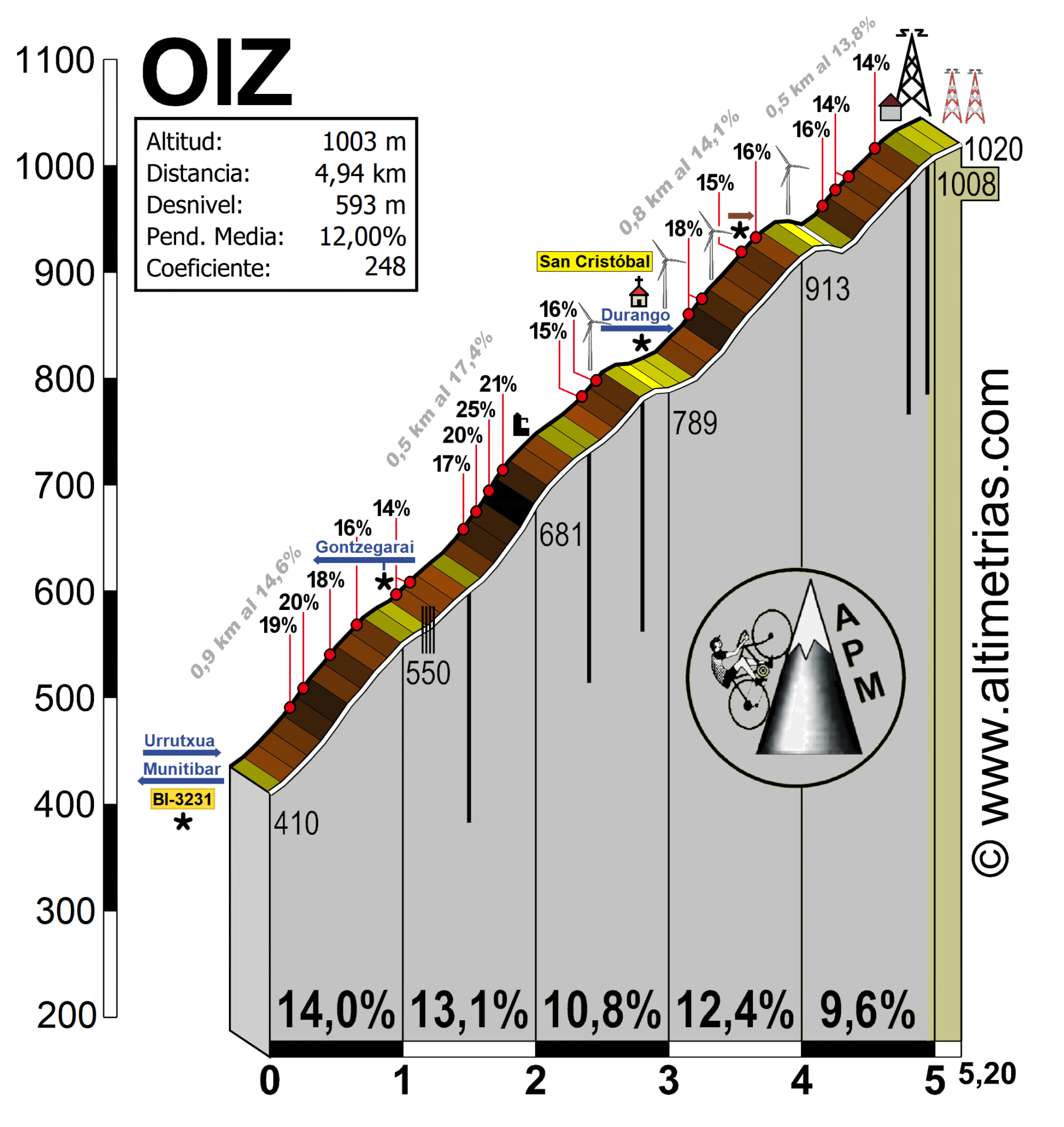 La ascensión no tiene misterios, si bien se va haciendo más y más dura según avanzas y las largas rectas del kilómetro y medio final hacen mucho daño, especialmente la recta denominada “txakurzulo” donde el puerto alcanza su pendiente máxima (14%).