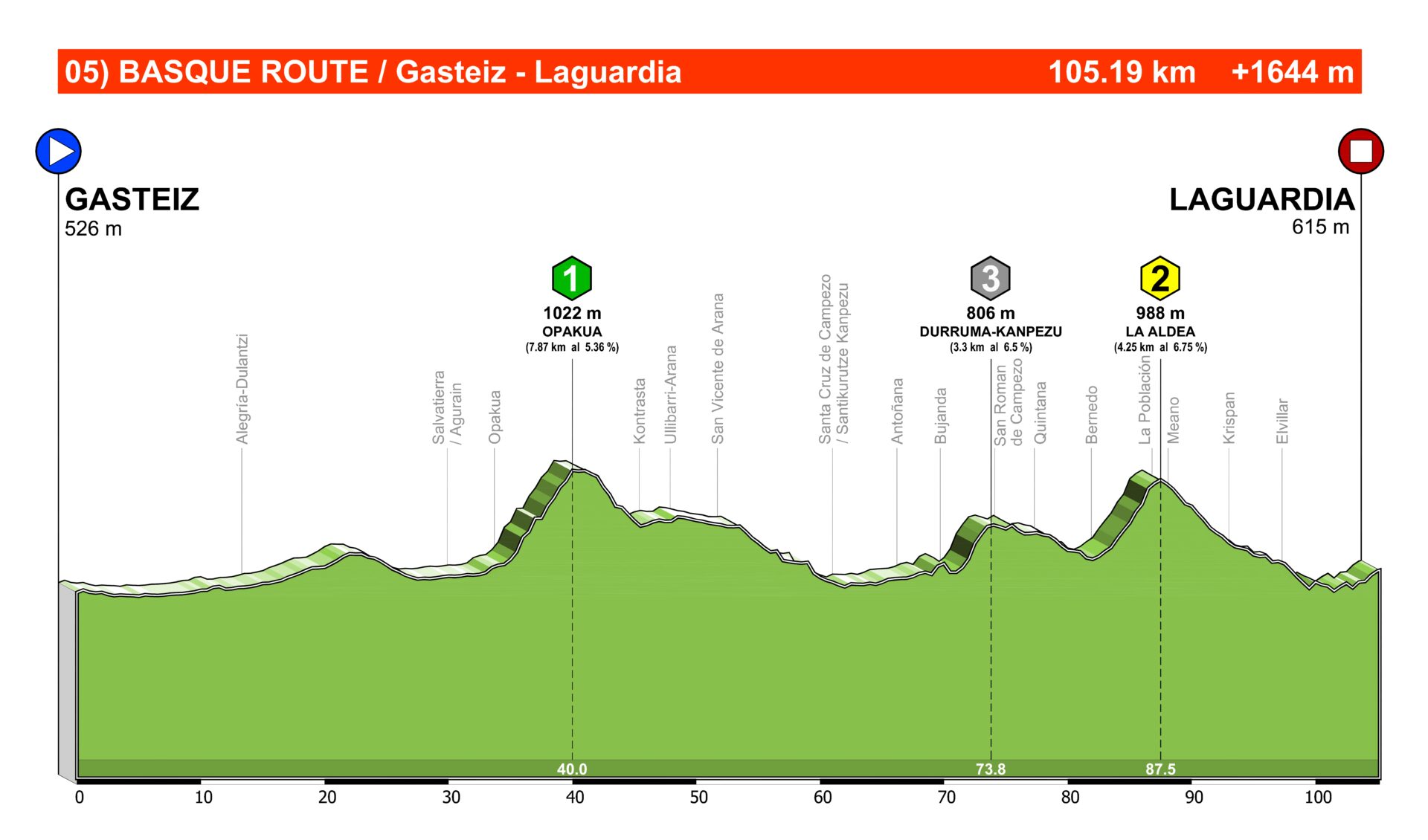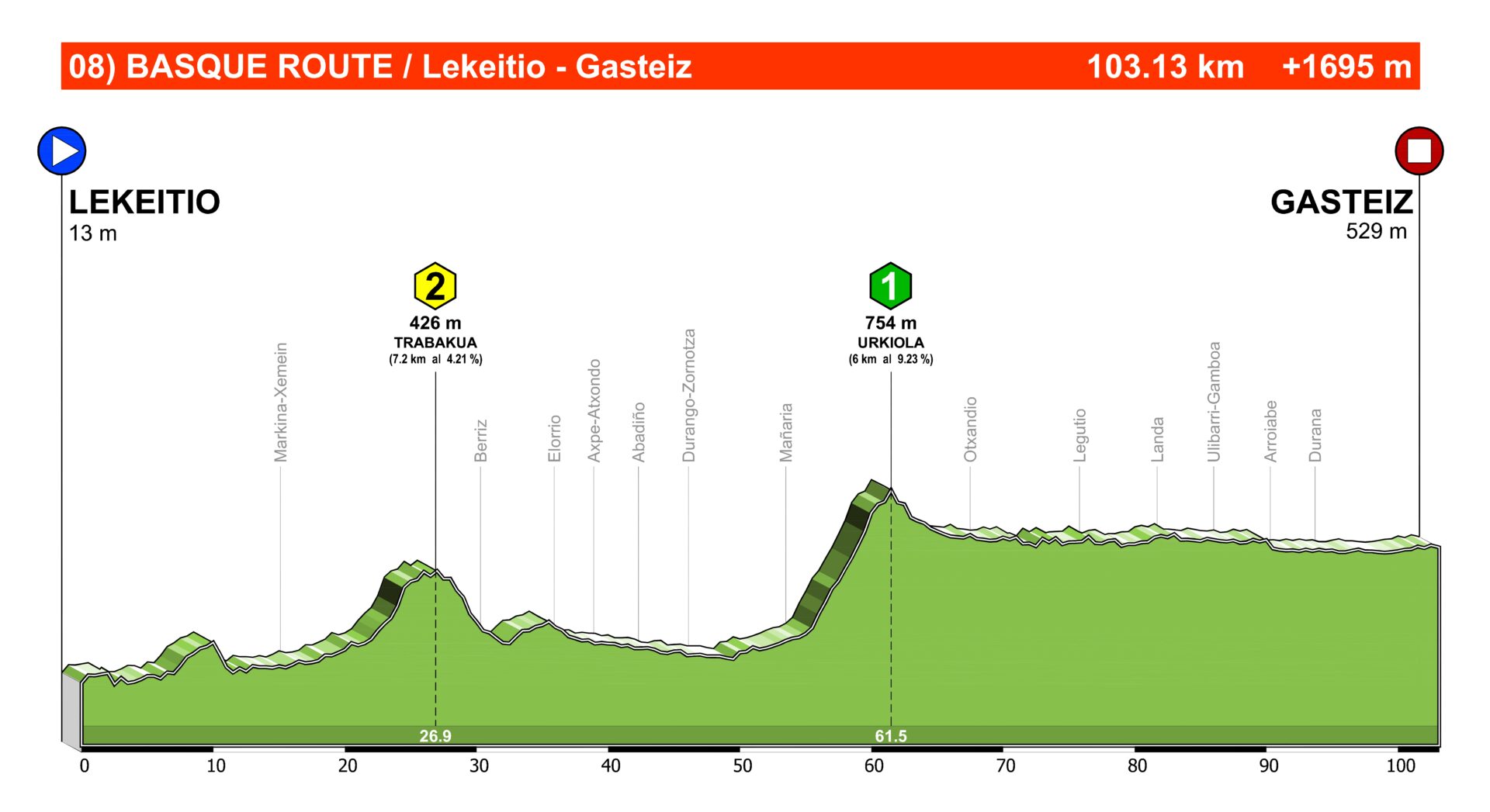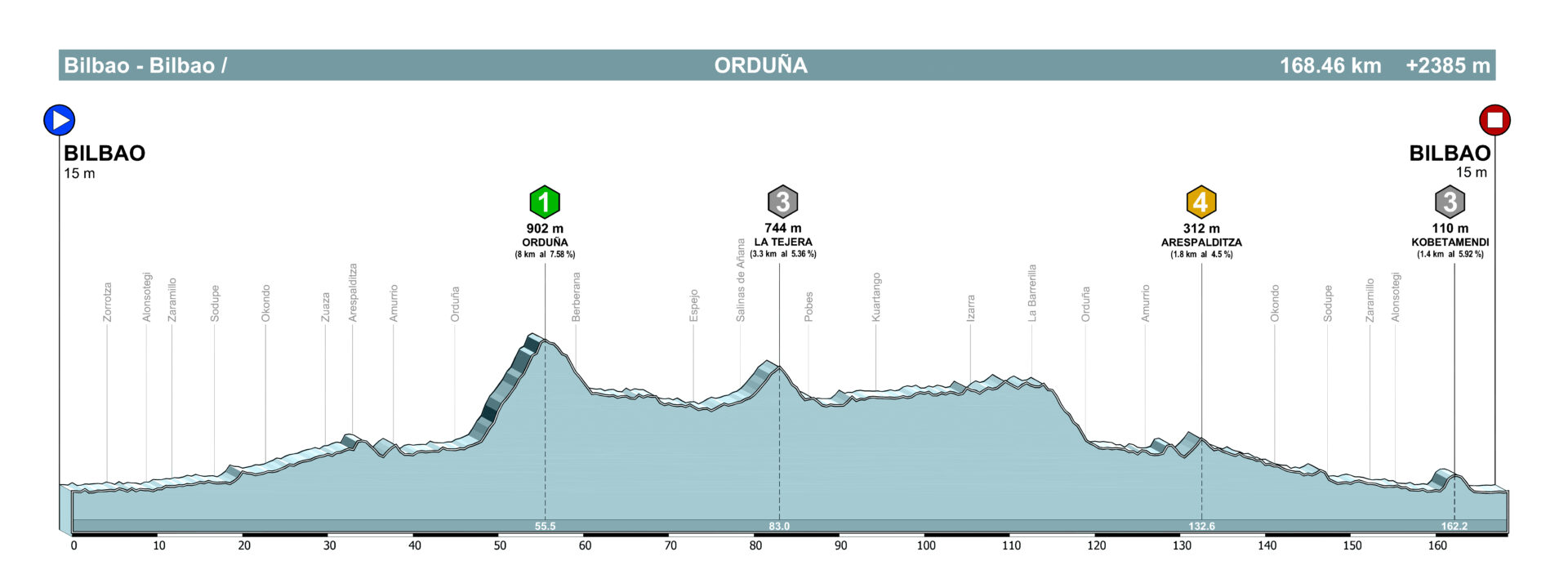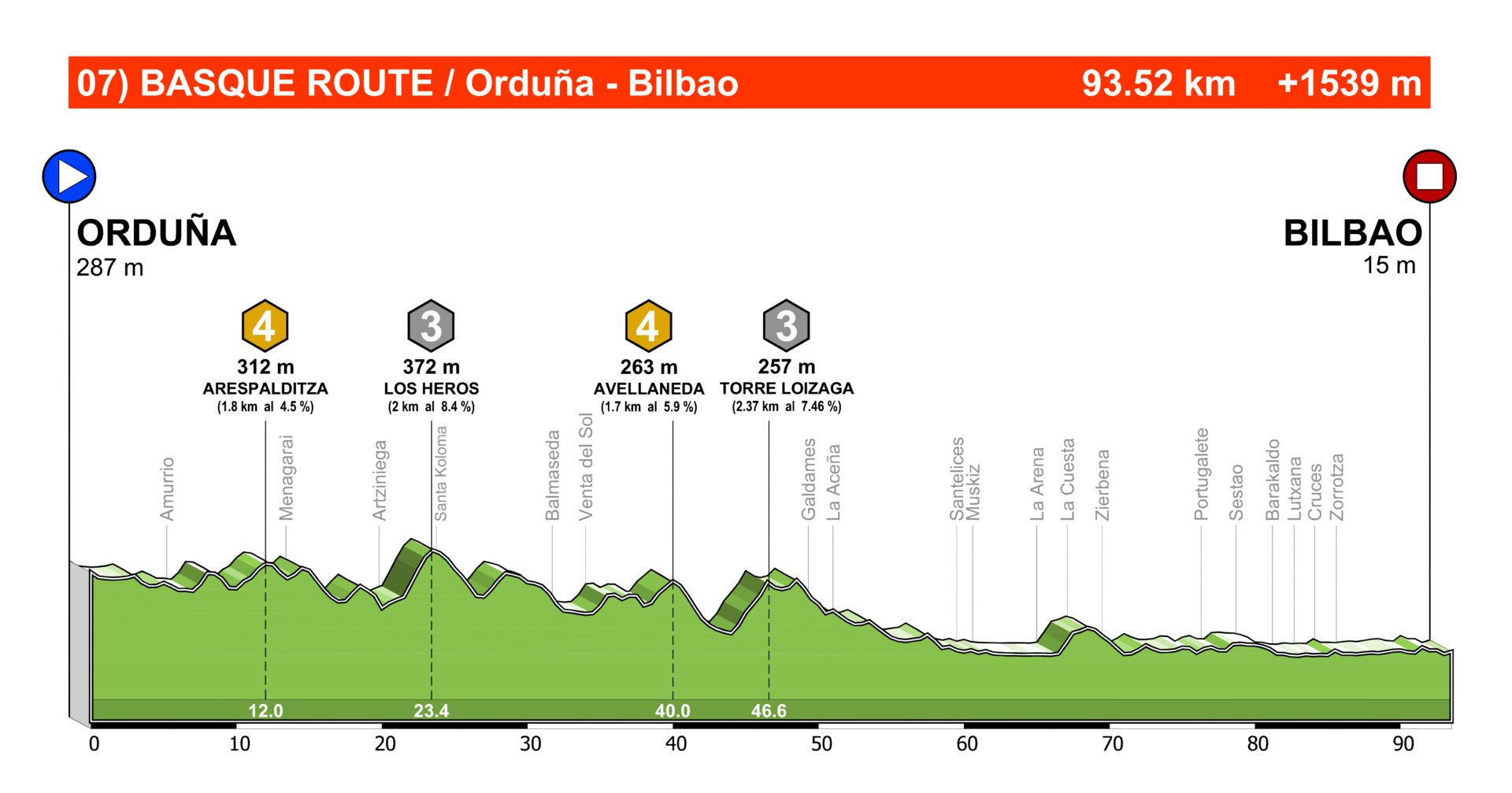 Orduña es un puerto relativamente largo para lo que nos vamos a encontrar en Euskadi, 8 km y con una pendiente media respetable; 7,6%.