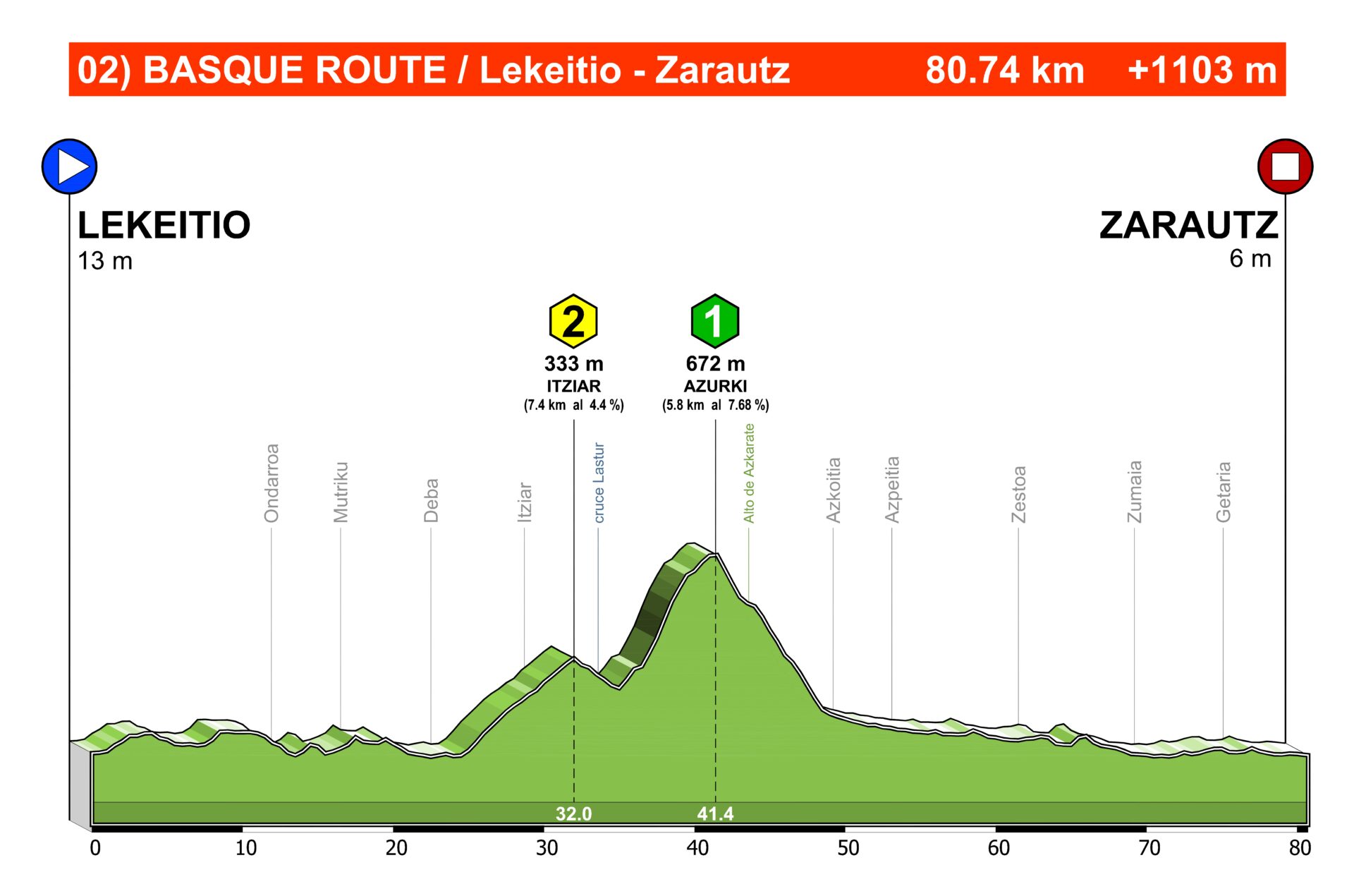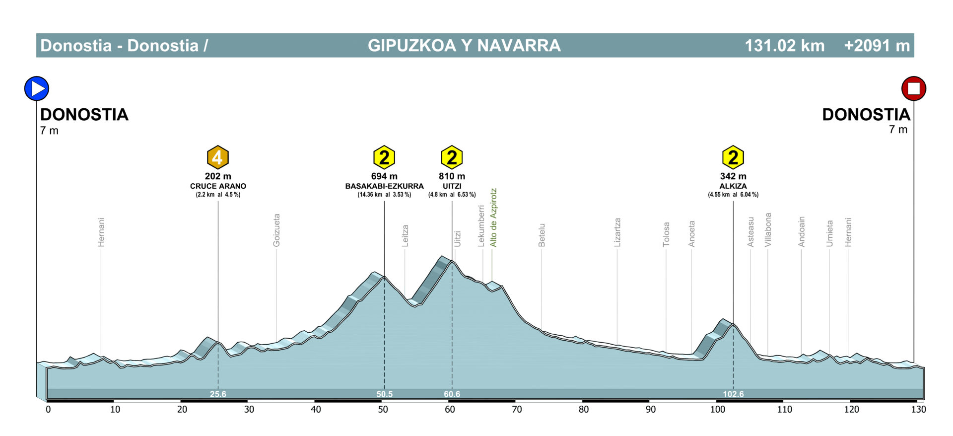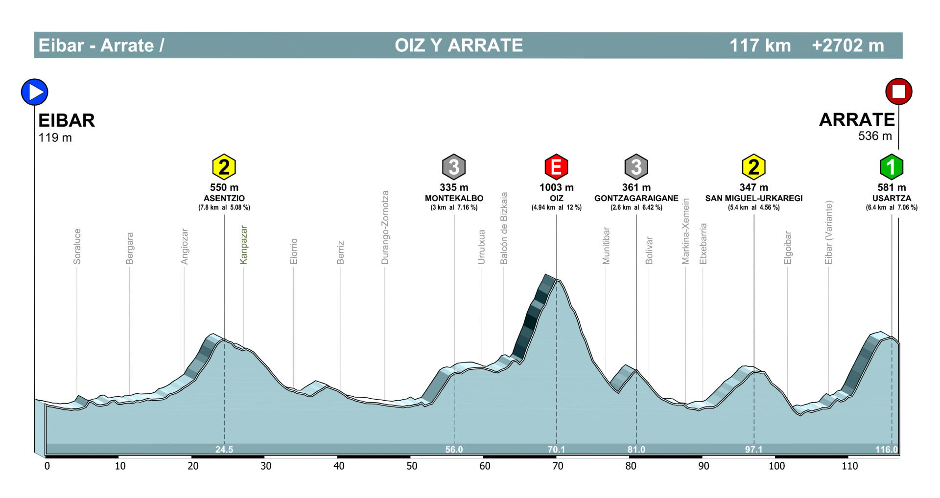 Sin duda alguna, Eibar es una de las localidades con mayor tradición ciclista y allí, Arrate es su estandarte, un puerto mítico en la historia del ciclismo y uno de los que más veces ha ascendido el ciclismo profesional. Este puerto se corona en el alto de Usartza, 1 km antes de llegar al santuario, donde se suele situar la meta.