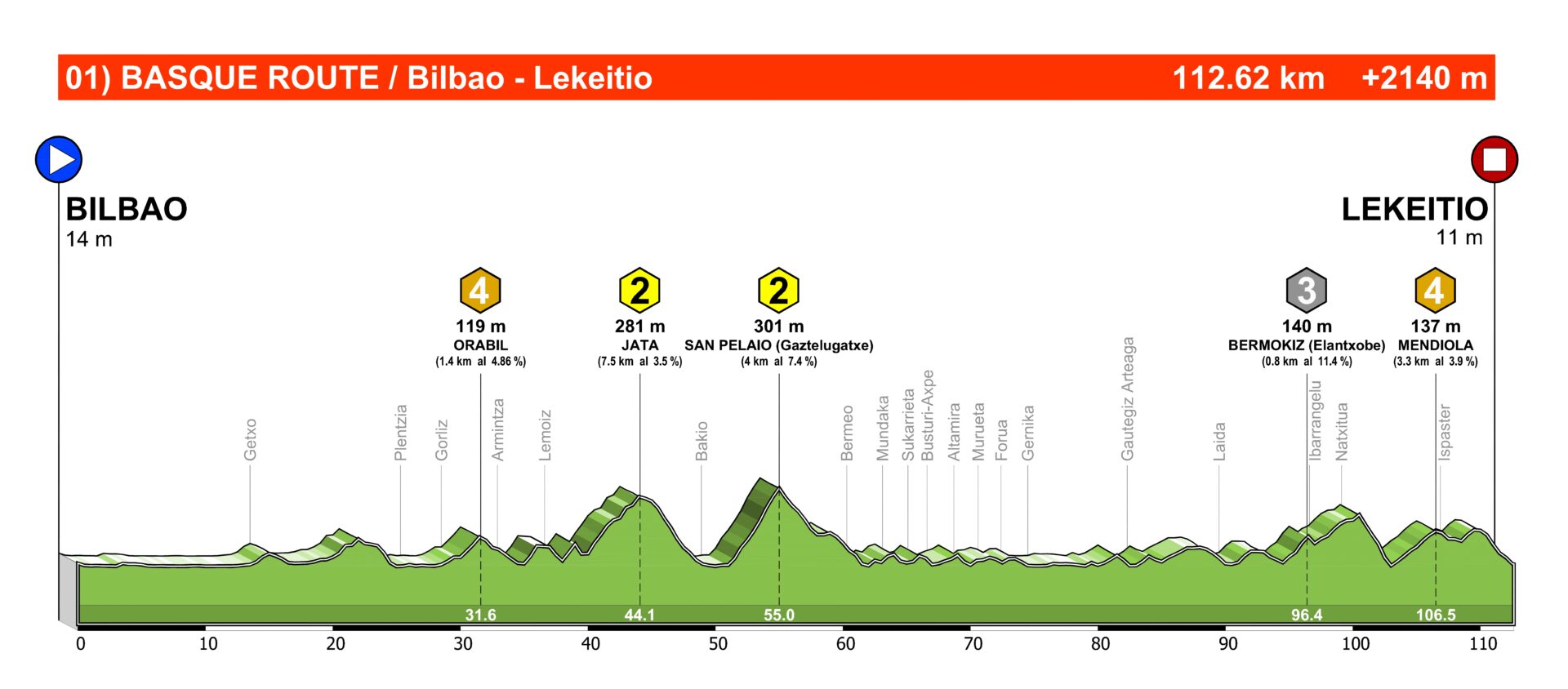 No hay montañas altas y en general los puertos que vamos a encontrarnos no van a ser largos, eso sí, no hay que confiarse porque casi siempre serán intensos.