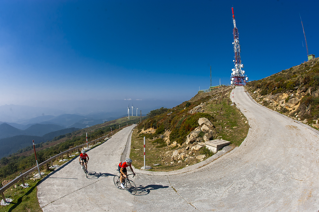 El monte Oiz es una de las cumbres de moda en Bizkaia a la que sin embargo su fama ciclista no le llegó hasta que fue final de etapa en la Vuelta en 2018. Allí, entre la niebla, todos pudimos ver sus terribles rampas en el tramo final. El canadiense Michael Woods, en un frenético final, se llevaría el honor de la victoria. Estamos ante un lugar muy especial, un balcón natural de toda la región, coronado por inmensas antenas y un parque eólico.